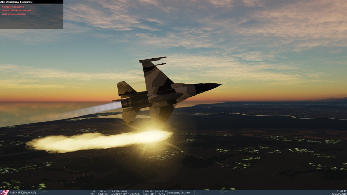 DCS World zeichnet vor allem durch ein absolut realistisches Flugmodell mit sehr gut simulierten Systemen und top Grafik aus. Dieser Simulator ist also nichts für Actionfans die mal kurz ein schnelles Match zocken wollen. Er wird viel mehr als Study Sim beschrieben, bei dem ein Modul erst gelernt werden muss, mit Handbüchern die nicht selten mehr als 300 Seiten stark sind. Zudem natürlich noch das fliegerische Handwerk, sprich Navigation, etwas Luftrecht wer mag, Verfahren und nicht zuletzt die Taktik der verschiedenen Rollen in denen man fliegen kann. Nachteil, DCS besitzt Maps also nicht die ganze Welt. Dafür ist diese aber sehr detailliert.